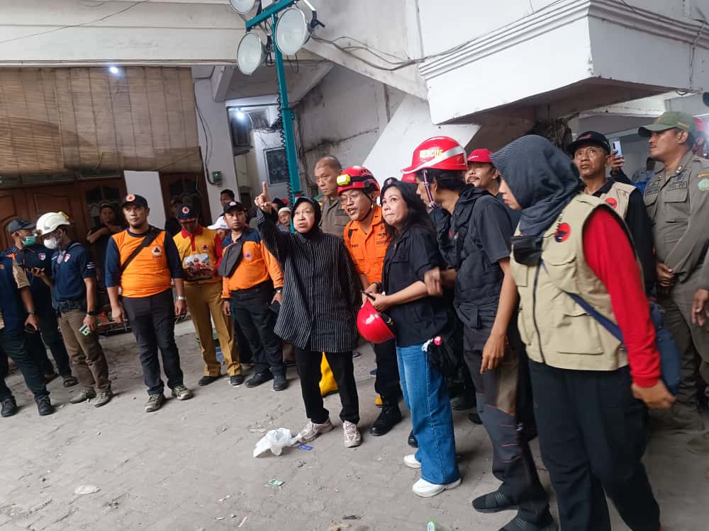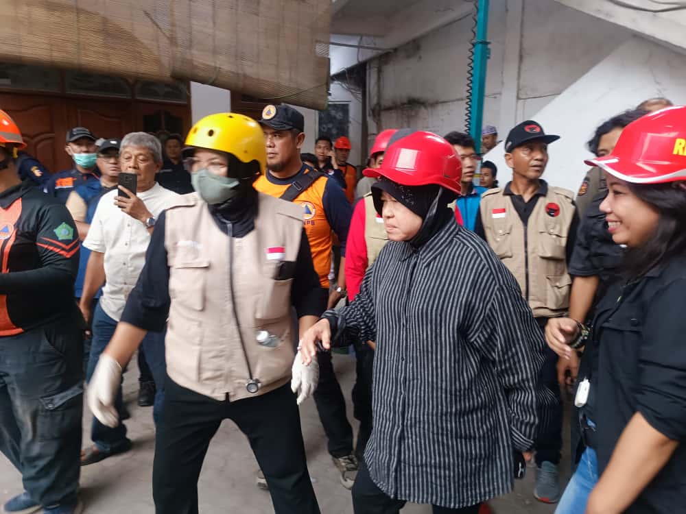 Usai meninjau reruntuhan, Risma melanjutkan kunjungannya ke posko penanggulangan bencana.