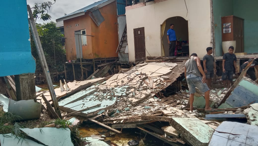 “Besoknya langsung kami bongkar karena bangunannya sudah turun, supaya bagian depan tidak ikut roboh,” katanya.