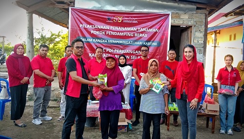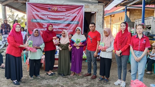 Busel, Gesuri.id - Memperingati Hari Kartini, Ketua DPC PDI Perjuangan Buton Selatan (Busel), Karlina Sukarman bersama jajaran pengurus menggelar aksi nyata dengan membagikan bibit tanaman pekarangan kepada ibu-ibu rumah tangga di Kecamatan Batauga.