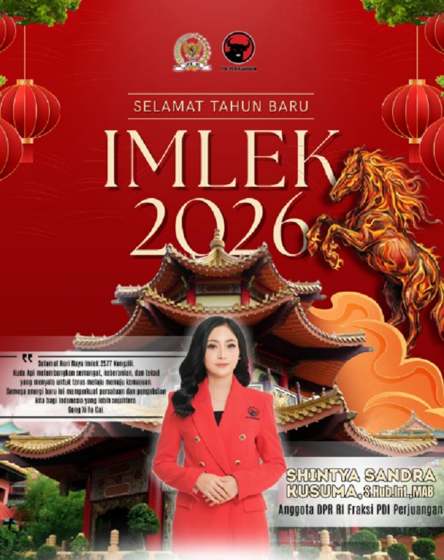 Jakarta, Gesuri.id - Anggota Komisi II DPR RI Fraksi PDI Perjuangan, Shintya Sandra Kusuma, menyampaikan ucapan selamat Hari Raya Imlek 2577 Kongzili kepada masyarakat yang merayakan.