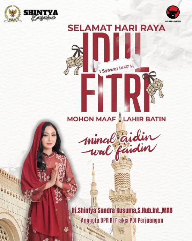 Lebih lanjut, Shintya Sandra Kusuma berharap semangat Idulfitri dapat membawa keberkahan bagi seluruh masyarakat serta menjadi awal yang baik untuk melangkah ke depan dengan penuh optimisme dan kedamaian.