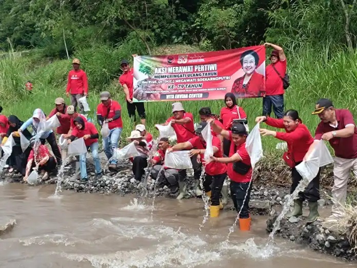 Jakarta, Gesuri.id - Anggota Komisi IX DPR RI fraksi PDI Perjuangan Dapil Jawa Tengah VI (Kota Magelang, Kab. Magelang, Kab. Temanggung, Kab. Wonosobo, dan Kab. Purworejo), Vita Ervina, bersama relawan dan masyarakat sekitar menggelar aksi ‘Merawat Pertiwi’ dengan menebar ribuan benih ikan di Sungai Pabelan, Desa Kapuhan, Kecamatan Sawangan, Kabupaten Magelang, Minggu (25/1)