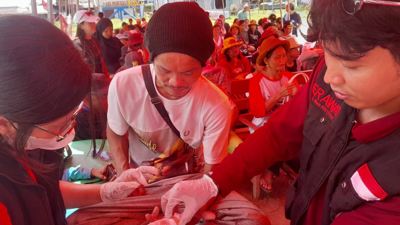 Antusiasme warga terpantau sangat tinggi sejak layanan dibuka pada pukul 09.00 WIB. Masyarakat dari berbagai desa berbondong-bondong datang untuk mendapatkan pemeriksaan medis tanpa dipungut biaya.