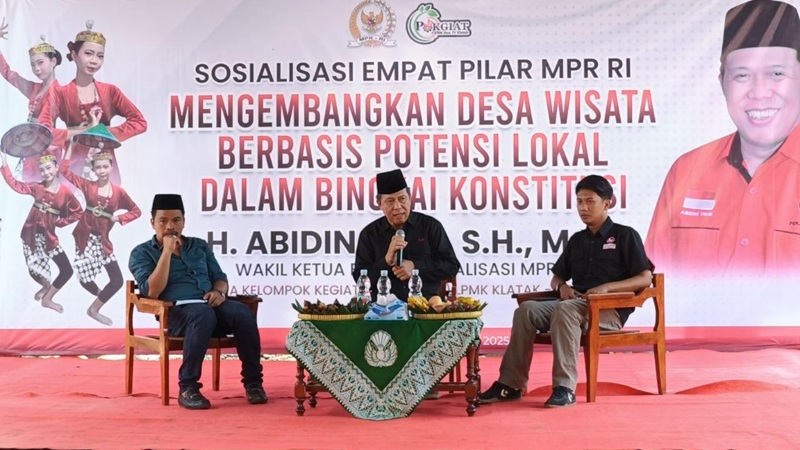 Hal tersebut disampaikan Wakil Ketua Badan Sosialisasi MPR RI sekaligus Anggota DPR RI Fraksi PDI Perjuangan, Abidin Fikri, dalam kegiatan Sosialisasi Empat Pilar MPR RI bertema “Mengembangkan Desa Wisata Berbasis Potensi Lokal Dalam Bingkai Konstitusi” yang digelar pada 23 November 2025 di Kelurahan Gadingsari, Sanden, Bantul.