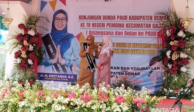 Gerakan tersebut disampaikan dalam kunjungan Bunda PAUD Kabupaten Demak ke TK Pembina Kecamatan Gajah, Senin (6/10/2025), didampingi Kepala Dinas Pendidikan dan Kebudayaan Haris Wahyudi Ridwan.