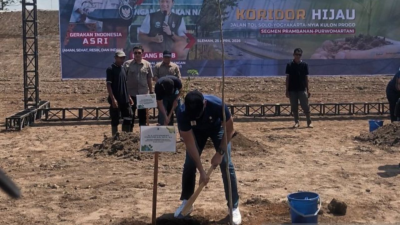 Sebelumnya Menko IPK Agus Harimurti Yudhoyono (AHY) melakukan penanaman pohon trembesi di Koridor Hijau pada ruas Tol Prambanan-Purwomartani.