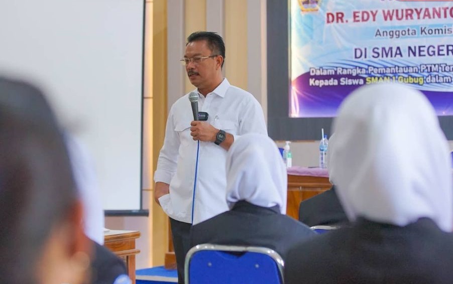 Grobogan, Gesuri.id - Anggota DPR RI, Edy Wuryanto melaksanakan kunjungan ke SMAN 1 Gubug, Kabupaten Grobogan, Jateng, baru-baru ini. Kunjungan itu dilakukan dalam rangka pemantauan pelaksanaan Pembelajaran Tatap Muka (PTM) terbatas pasca pandemi Covid-19.