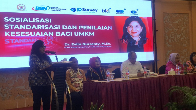 Evita menjelaskan, proses peningkatan daya saing UMKM tidak berhenti pada legalitas dasar saja. UMKM perlu memahami tahapan sertifikasi, mulai dari mengikuti skema SNI Bina UMK hingga memperoleh sertifikat SNI penuh.