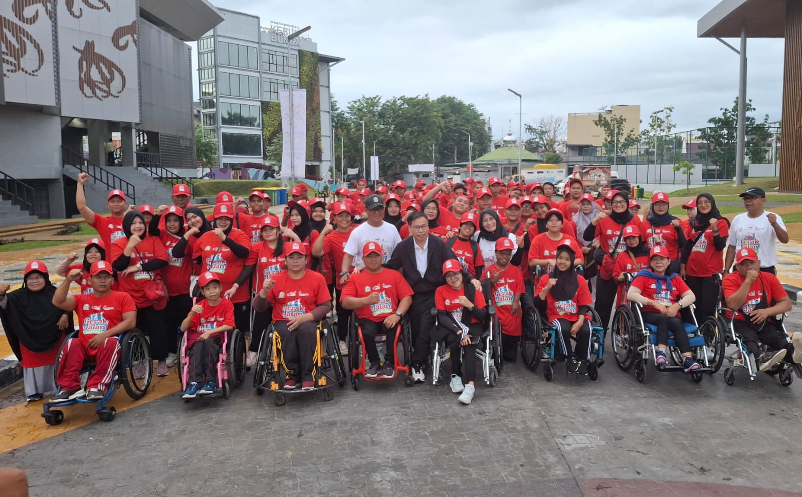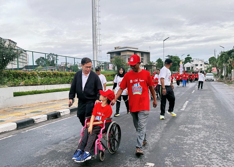 Medan, Gesuri.id – Hujan lebat mengguyur Kota Medan sejak dini hari. Jam di handphone masih menunjukkan pukul 04.00 WIB. Namun satu persatu peserta dengan kursi roda dan alat bantu disabilitas lainnya sudah mulai meramaikan lokasi acara yang baru akan dimulai pukul 06.00 WIB.