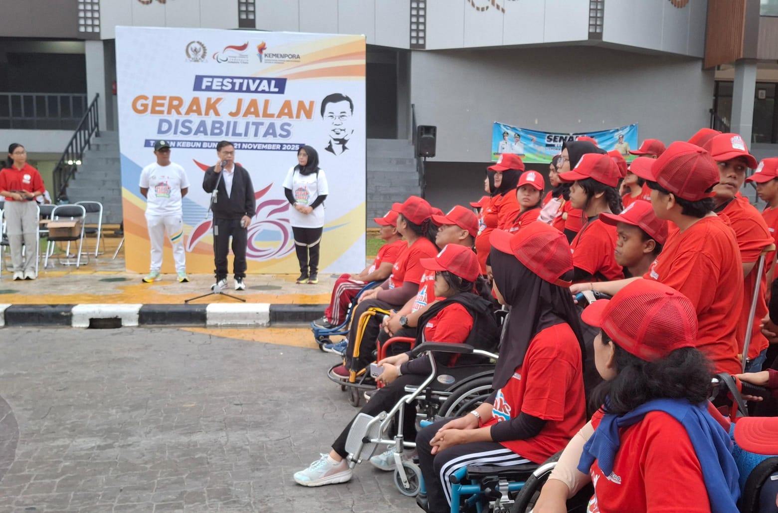 Baju yang basah di badan, tak menyurutkan langkah. Disiplin, kompak, semangat dan penuh keceriaan, itulah kesan yang muncul ketika melihat ratusan peserta disabilitas hadir dalam acara Festival Gerak Jalan Disabilitas yang digelar Kementerian Pemuda dan Olahraga (Kemenpora) dan Komisi X DPR RI bekerjasama dengan National Paralympic Committee (NPC) Sumut di Kebun Bunga, Medan, Jumat (21/11).