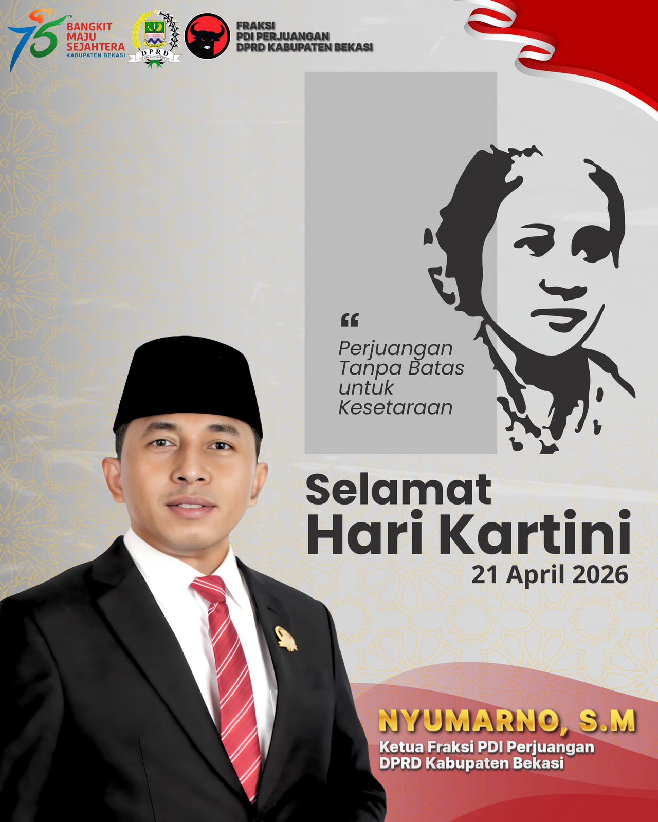 “Habis gelap, terbitlah terang—dan PDI Perjuangan memastikan cahaya itu tidak pernah padam. Perempuan Bekasi adalah kekuatan, adalah harapan, dan adalah masa depan Kabupaten Bekasi,” ujar Nyumarno mengutip semangat perjuangan Kartini dan Bung Karno.