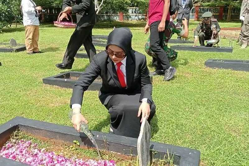Usai upacara, kegiatan dilanjutkan dengan tabur bunga di makam para pahlawan.