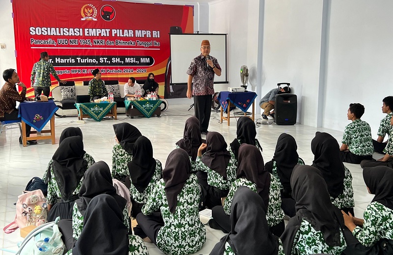 Hal itu disampaikan Harris dalam Sosialisasi Empat Pilar Kebangsaan yang digelar di SMK Ma’arif NU Talang, Kabupaten Tegal, Jawa Tengah, Sabtu (20/12/2025). Menurutnya, pemahaman terhadap nilai-nilai Pancasila, UUD 1945, NKRI, dan Bhinneka Tunggal Ika menjadi fondasi penting bagi remaja dalam menghadapi dinamika pergaulan, termasuk konten dan berita di media sosial.
