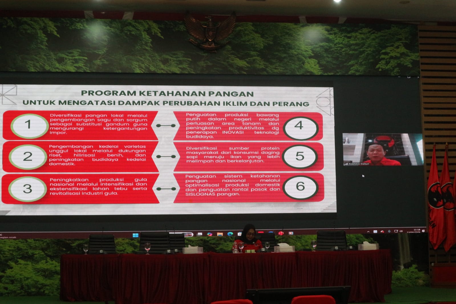 Dalam pidatonya, Hasto menekankan pentingnya peran tiga pilar partai dalam menghadapi ancaman krisis pangan akibat anomali cuaca El Nino dan ketidakpastian geopolitik global.