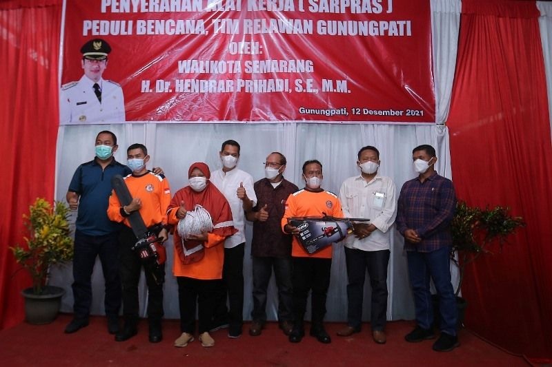 Hendrar Prihadi menyerahkan sejumlah sarana prasarana yang dipergunakan untuk mendukung mitigasi bagi Relawan Gunungpati Peduli.