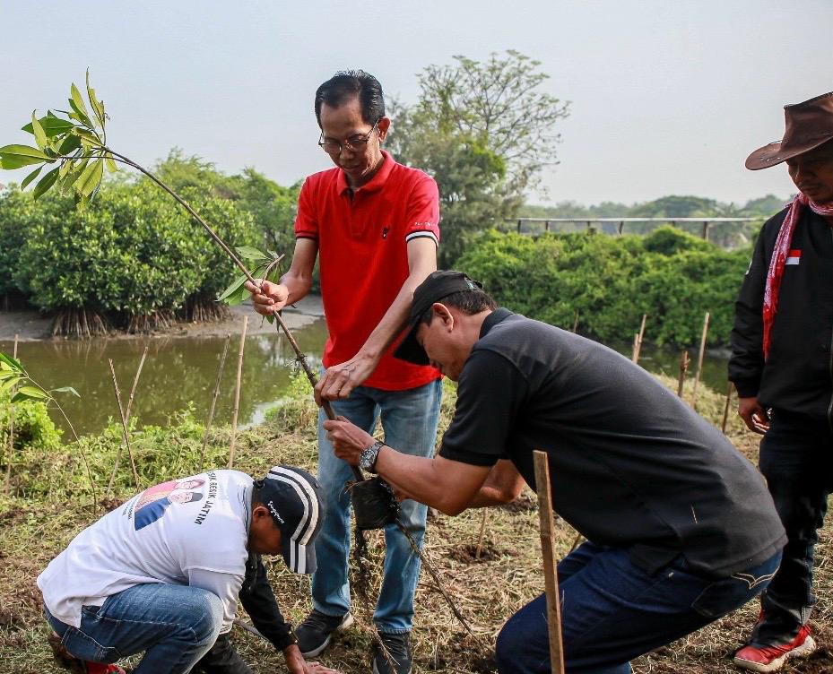 Dalam penanaman mangrove, Adi Sutarwijono mengajak semua kader banteng dan masyarakat umum untuk menjaga konservasi alam, dengan berbagai upaya yang bisa dilalukan.