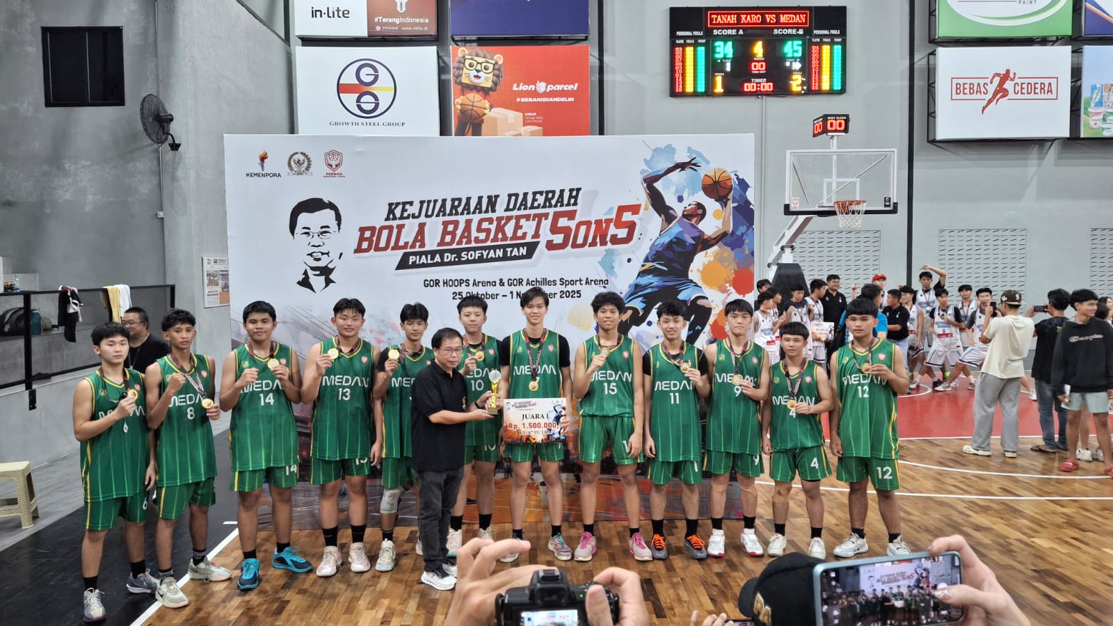 Medan, Gesuri.id – Tim Basket Medan masih mendominasi sebagai juara di semua kategori Kejuaraan Daerah (Kejurda) Bola Basket 5on5 Piala dr Sofyan Tan yang digelar 25 Oktober – 1 November 2025 di GOR Hoops Arena, Jalan Serasi, Medan. Namun secara teknis permainan sudah cukup merata dimana tim daerah lain seperti tim Basket Tanah Karo, Binjai dan Deli Serdang memberikan perlawanan sengit di partai final.