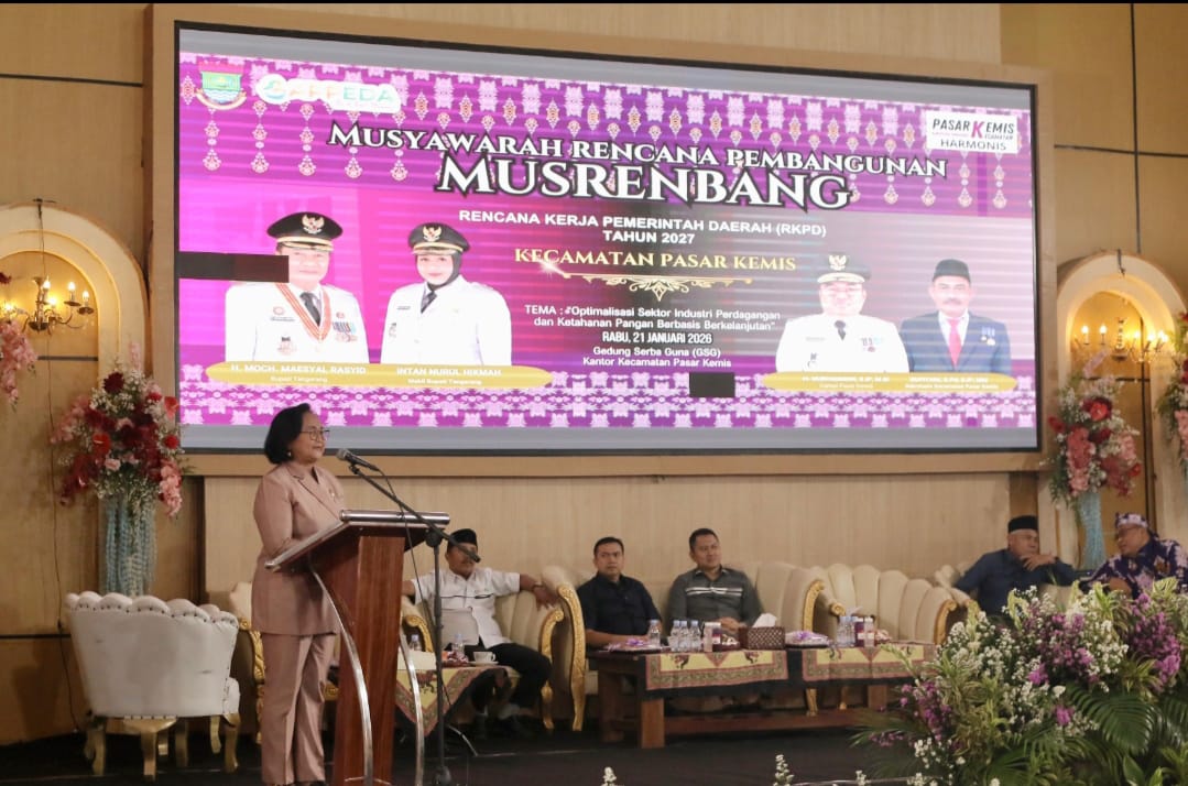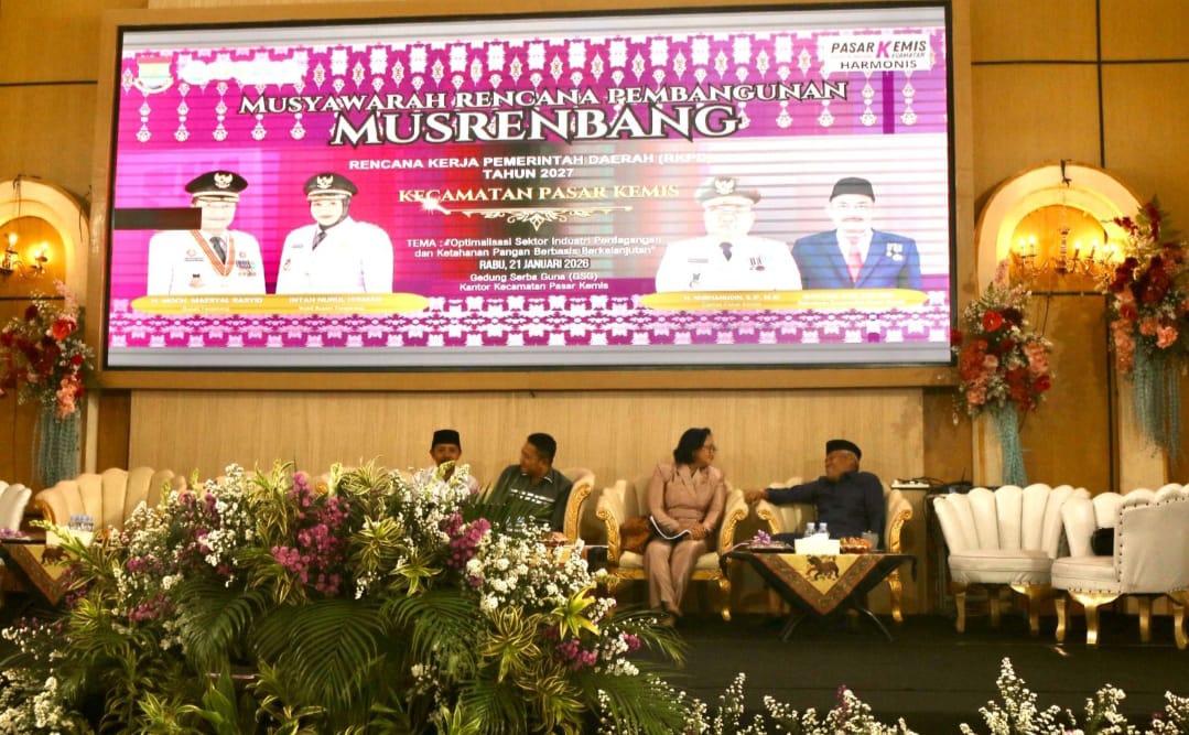 Kegiatan MUSRENBANG tersebut digelar pada Rabu, 21 Januari 2026, di Gedung Serba Guna Kantor Kecamatan Pasar Kemis, dan diselenggarakan oleh Pemerintah Daerah Kabupaten Tangerang dengan mengusung tema “Optimalisasi Sektor Industri, Perdagangan, dan Ketahanan Pangan Berbasis Berkelanjutan.”
