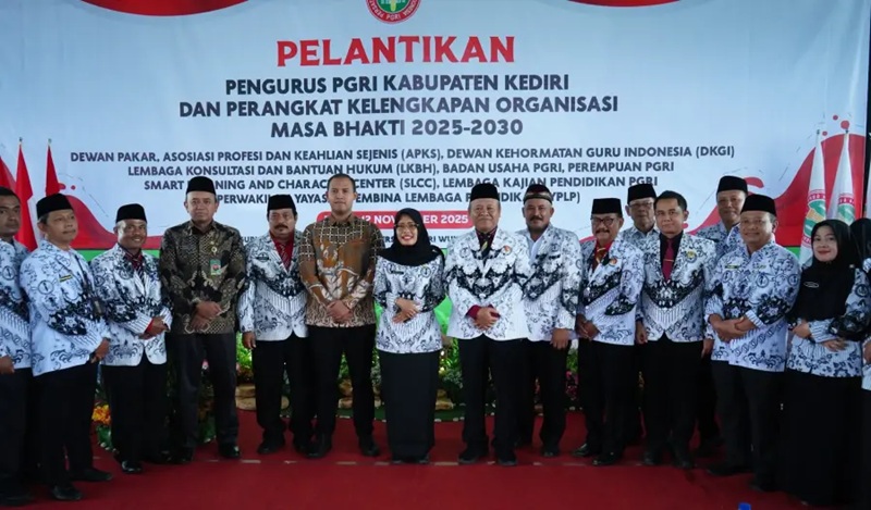 Pesan tersebut disampaikan melalui Wakil Bupati Kediri, Dewi Mariya Ulfa, pada Pelantikan Pengurus dan Perangkat Kelengkapan Organisasi PGRI Kabupaten Kediri Masa Bhakti 2025–2030 di Aula Kebun Blimbing, Desa Turus, Kecamatan Gurah, Sabtu (15/11).