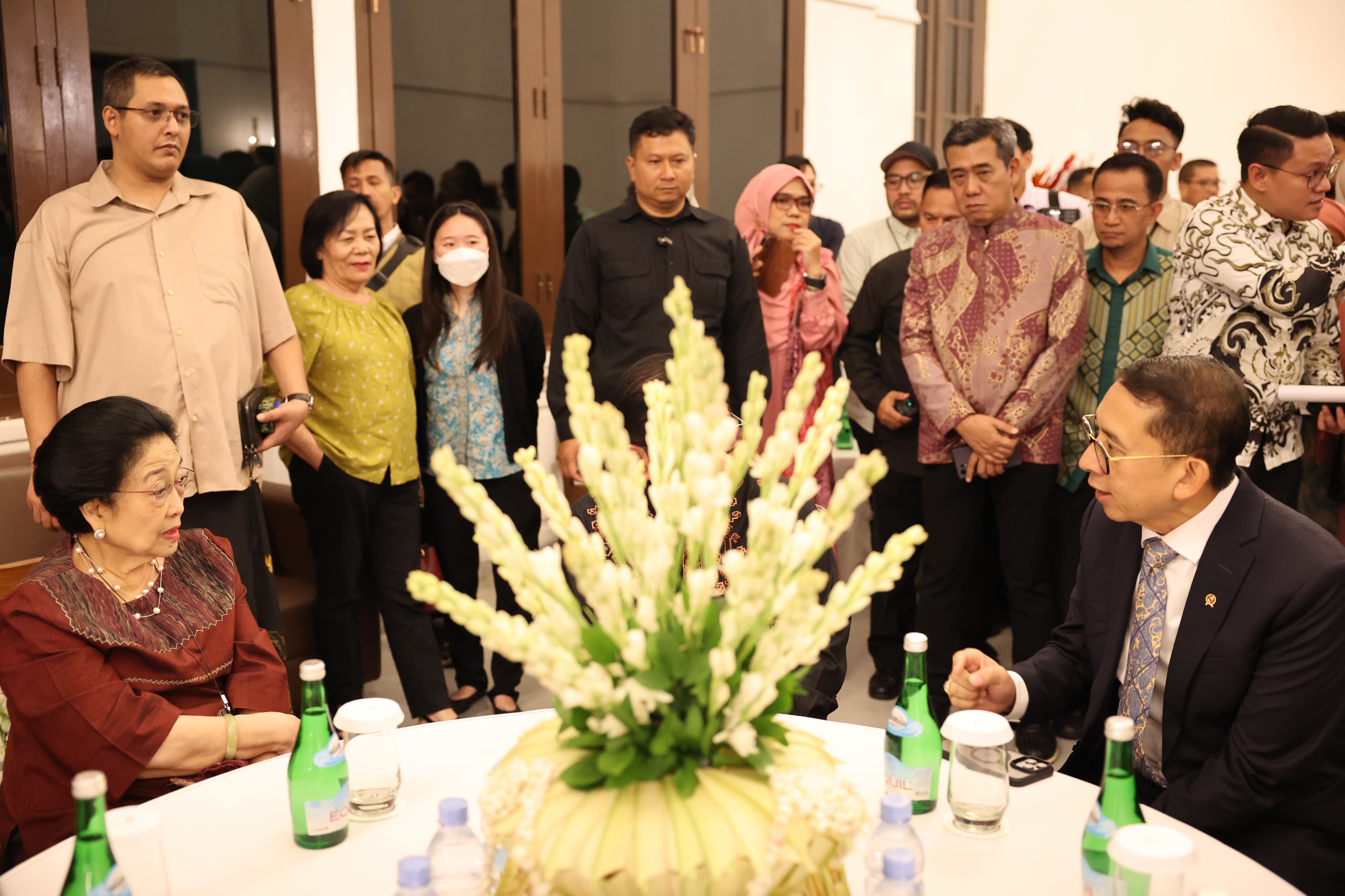 Tak hanya itu, Megawati turut mengajak Duta Besar Uzbekistan untuk Indonesia, Oybek Eshono dan Wakil Gubernur Wilayah Samarkand, Rustam Kobilov untuk berbincang santai.