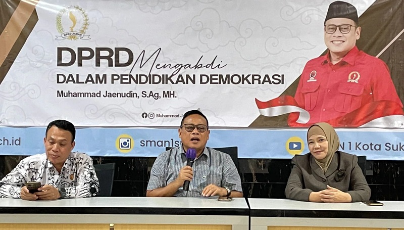 Sukabumi, Gesuri.id – Anggota DPRD Provinsi Jawa Barat Fraksi PDI Perjuangan Muhammad Jaenudin memberikan pendidikan politik dan demokrasi kepada para siswa SMA Negeri 1 Kota Sukabumi, Senin (24/11/2025).
