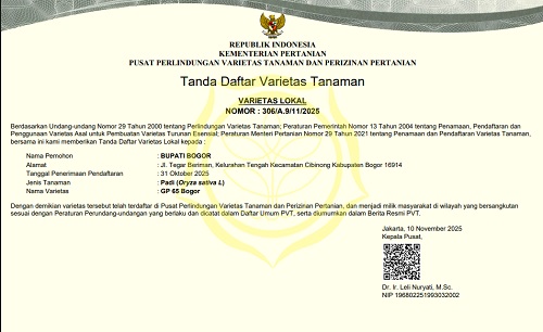 Jika ditetapkan, GP 65 Bogor diproyeksikan menjadi salah satu varietas lokal potensial untuk memperkuat produktivitas dan kemandirian pangan menuju swasembada pangan nasional.