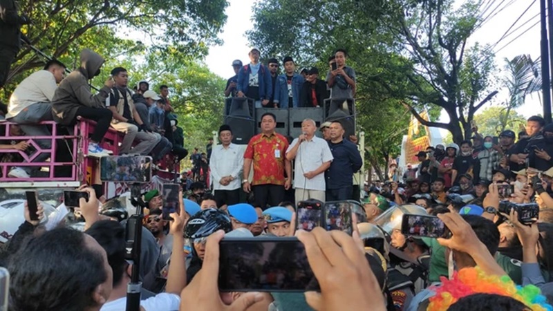 Korlap aksi, Harno, menyampaikan rasa syukur karena DPRD yang dipimpin PDI Perjuangan telah menyepakati enam tuntutan utama.