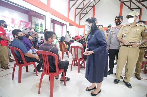 Landak, Gesur.id - Bupati Landak Karolin Margret Natasa meninjau pelaksanaan vaksin massal di Kecamatan Sengah Temila bertempat di SMA Berkat Bagi Bangsa, Desa Senakin dengan dampingi Kepala Dinas Kesehatan Kabupaten Landak, Camat Sengah Temila, Kapolsek Sengah Temila, Kepala Puskesmas Senakin, Kepala Puskesmas Pahauman, Kepala Desa Sidas, para Kades dari 5 desa dalam wilayah Kecamatan Sengah Temila, Selasa (29/6).
