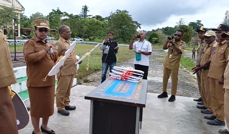 Bantuan diserahkan secara simbolis kepada para kepala puskesmas dengan didampingi kepala distrik di kantor bupati.