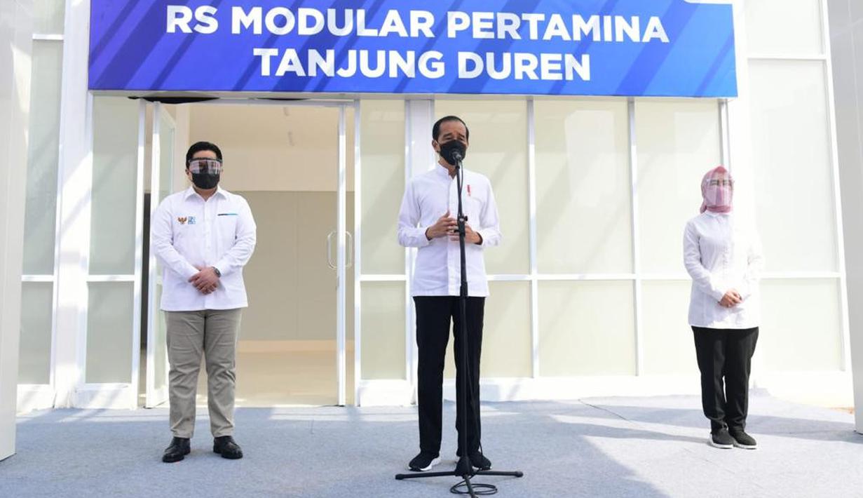 "Pada pagi hari ini saya bersama-sama dengan Menteri BUMN dan Dirut Pertamina, melihat RS Modular Pertamina di Tanjung Duren, Jakarta," kata Presiden Jokowi di RS Modular Tanjung Duren, Jumat (6/8).