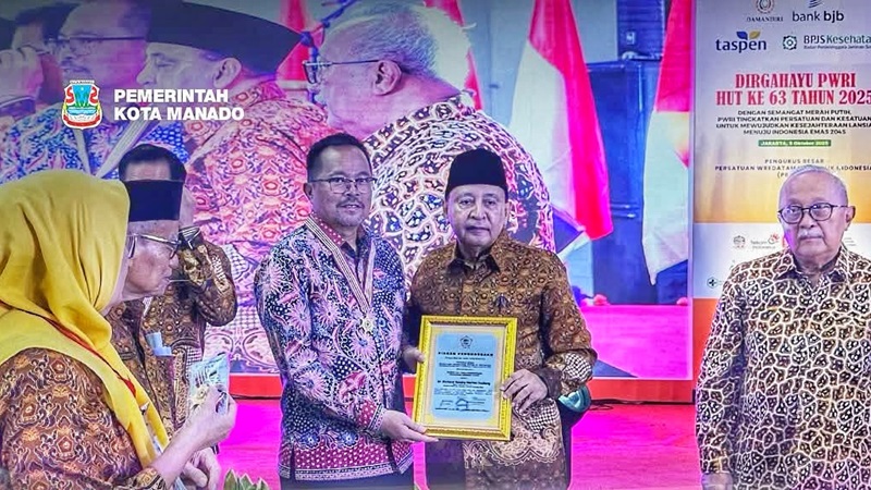 Manado, Gesuri.id – Wakil Wali Kota Manado dr. Richard Sualang, yang juga politisi PDI Perjuangan, menerima penghargaan Wredatama Nugraha (PTP-WN) Utama pada peringatan HUT ke-63 Persatuan Wredatama Republik Indonesia (PWRI) di Jakarta, Minggu (5/10/2025).