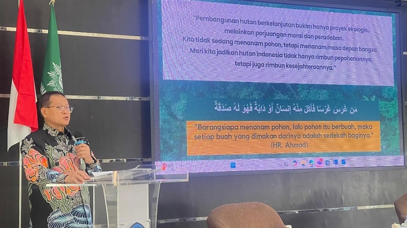 "Indonesia diberkahi lebih dari 95 juta hektare kawasan hutan, atau sekitar 51% dari total daratan nasional (KLHK, 2025), yang merupakan hutan terluas ketiga di dunia, hanya di bawah Brazil dan Kongo," ujar Rektor Universitas UMMI Bogor ini.