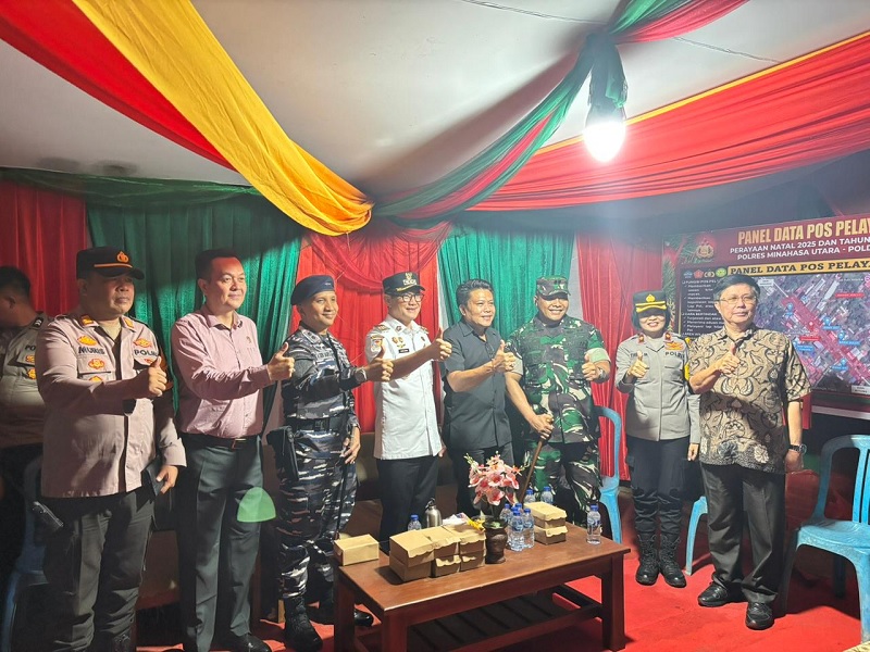 Jakarta, Gesuri.id - Bupati Minahasa Utara, Joune Ganda, bersama unsur Forum Koordinasi Pimpinan Daerah (Forkopimda) dan jajaran Pemerintah Kabupaten Minahasa Utara turun langsung memantau kesiapan pengamanan dan pelayanan Natal dan Tahun Baru (Nataru), Rabu (24/12/2025).