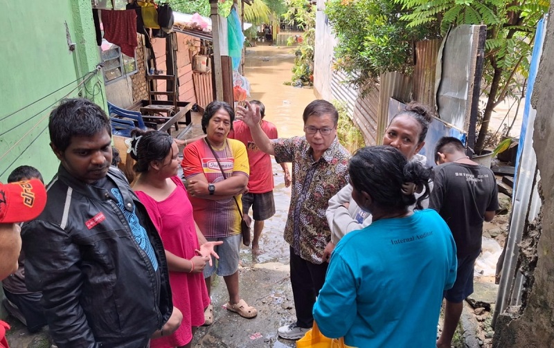 Jakarta, Gesuri.id - Jannah, 52, salah seorang ibu warga Kelurahan Polonia berinisiatif menghubungi dr Sofyan Tan untuk memberikan informasi bahwa sekitar 44 kepala keluarga dengan penduduk sekitar 165 jiwa saat ini sedang menjadi korban banjir meluapnya Sungai Babura yang naik ke pemukiman warga sejak pukul 20.00 WIB, Sabtu (11/10).