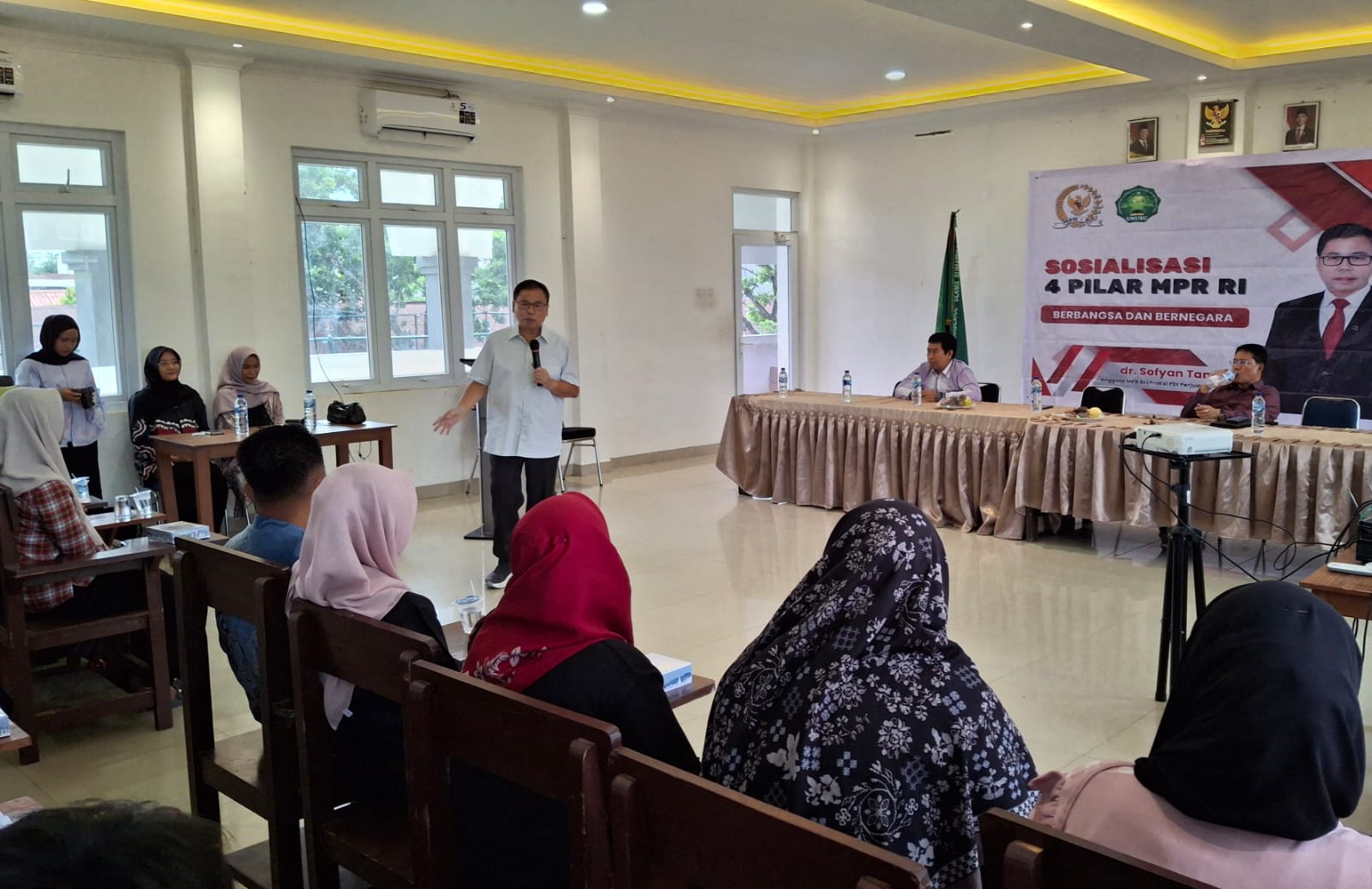 "Lagu ini sudah jadi gambaran dari 4 pilar berbangsa dan bernegara. Itu artinya mahasiswa di sini sudah berada di lingkungan yang tepat dalam mengamalkan 4 pilar berbangsa dan bernegara,” ujar Sofyan Tan dalam Sosialisasi 4 Pilar Berbangsa dan Bernegara MPR RI yakni Pancasila, UUD 1945, NKRI dan Bhinneka Tunggal Ika di Kampus UNUSU, Jalan Gaperta Ujung, Medan, Minggu (14/12).