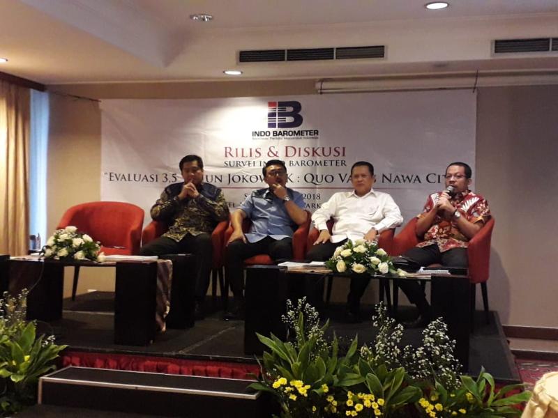 Jakarta, Gesuri.id - Lembaga survei Indo Barometer merilis hasil survei terhadap kepuasan kinerja pemerintahan dan program nawacita Joko Widodo-Jusuf Kalla. Hasilnya, mayoritas publik sangat puas dengan kinerja Jokowi-JK dan terhadap pencapaian program nawacita Jokowi.