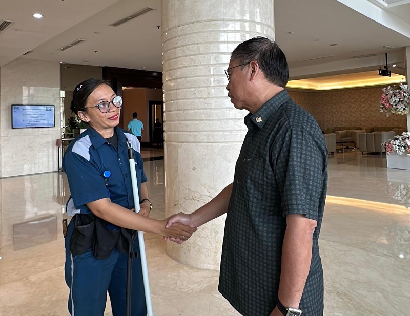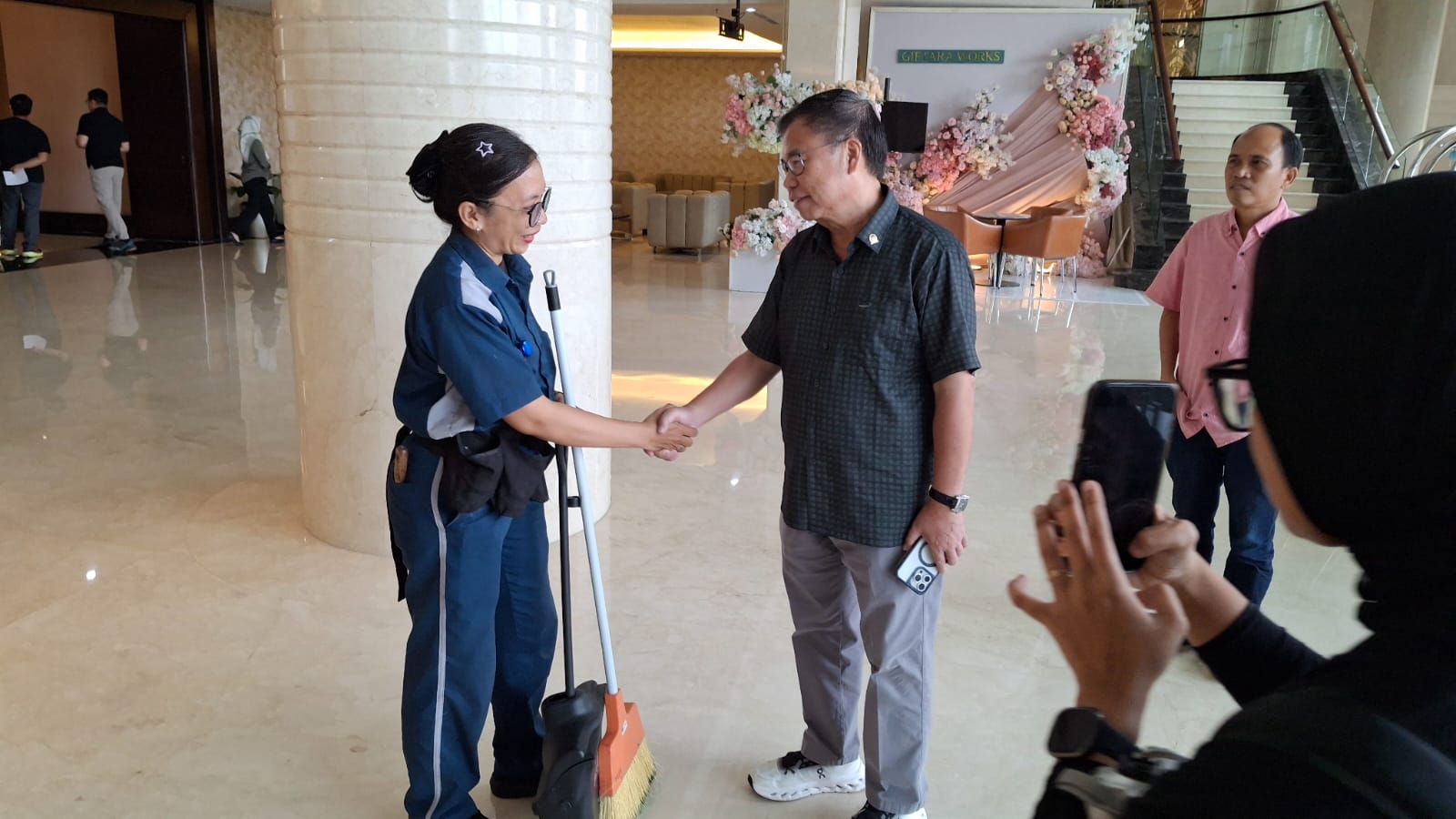 Jakarta, Gesuri.id - Seorang ibu pekerja cleaning service tampak sedikit tergesa-gesa menghampiri dr Sofyan Tan. Dengan sebuah sapu dan serokan yang digenggamnya di tangan kiri, ibu berkacamata itu menyalami Anggota Komisi X DPR RI tersebut yang saat itu sedang berada di lobby Hotel Four Points by Sheraton usai menjadi keynote speaker dalam Bimbingan Teknis (Bimtek) Badan Inovasi dan Riset Nasional (BRIN), Selasa (21/10).