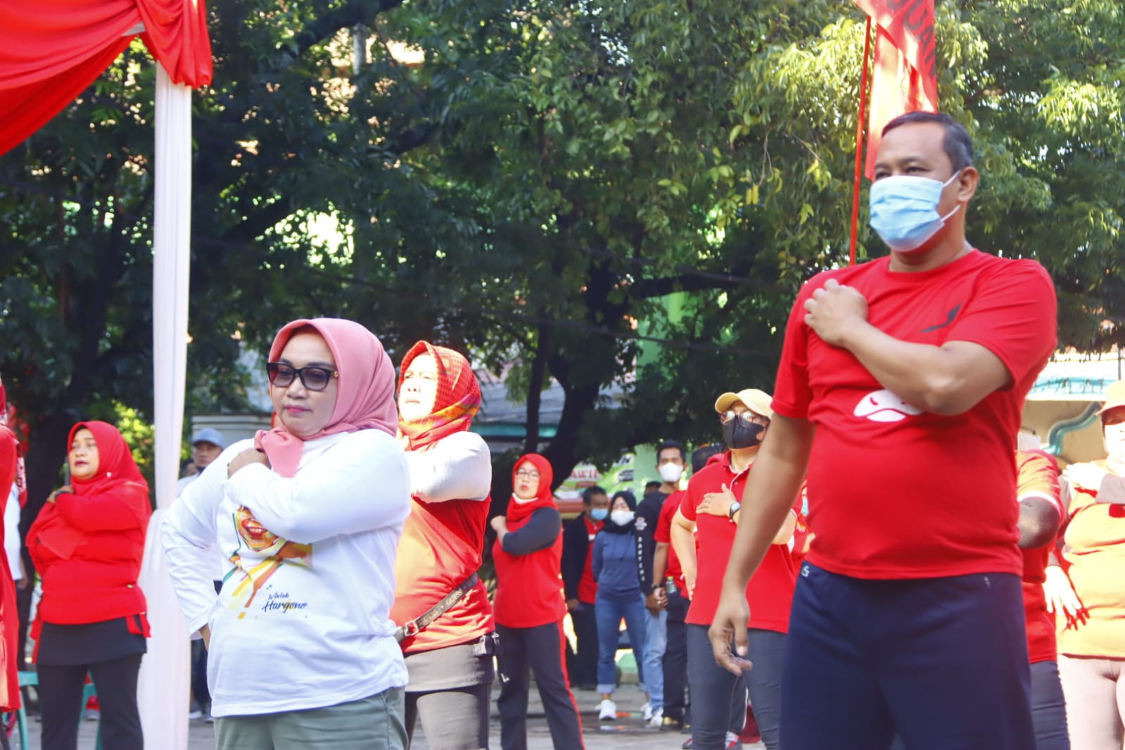 Bekasi, Gesuri.id - Pelaksana Tugas (Plt) Wali Kota Bekasi Tri Adhianto didampingi Istri Wiwiek Hargono Senam Bersama Warga dirangkai dengan kegiatan penanaman 1.000 pohon sukun secara simbolis di Kelurahan Perwira Kecamatan Bekasi Utara, Minggu (23/1).