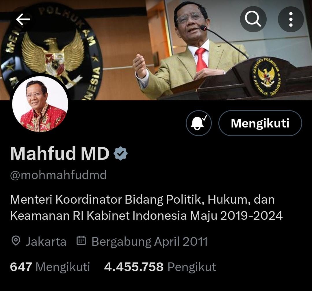 Sejak pengumuman cawapres Mahfud MD mundur dari jabatan Menko Polhukam bergulir, tepatnya kemarin (24/01/2024) akun X Ganjar Pranowo dan Mahfud MD seperti mendapatkan perlakuan berbeda dengan capres dan cawapres lain. Terutama akun Mahfud MD.
