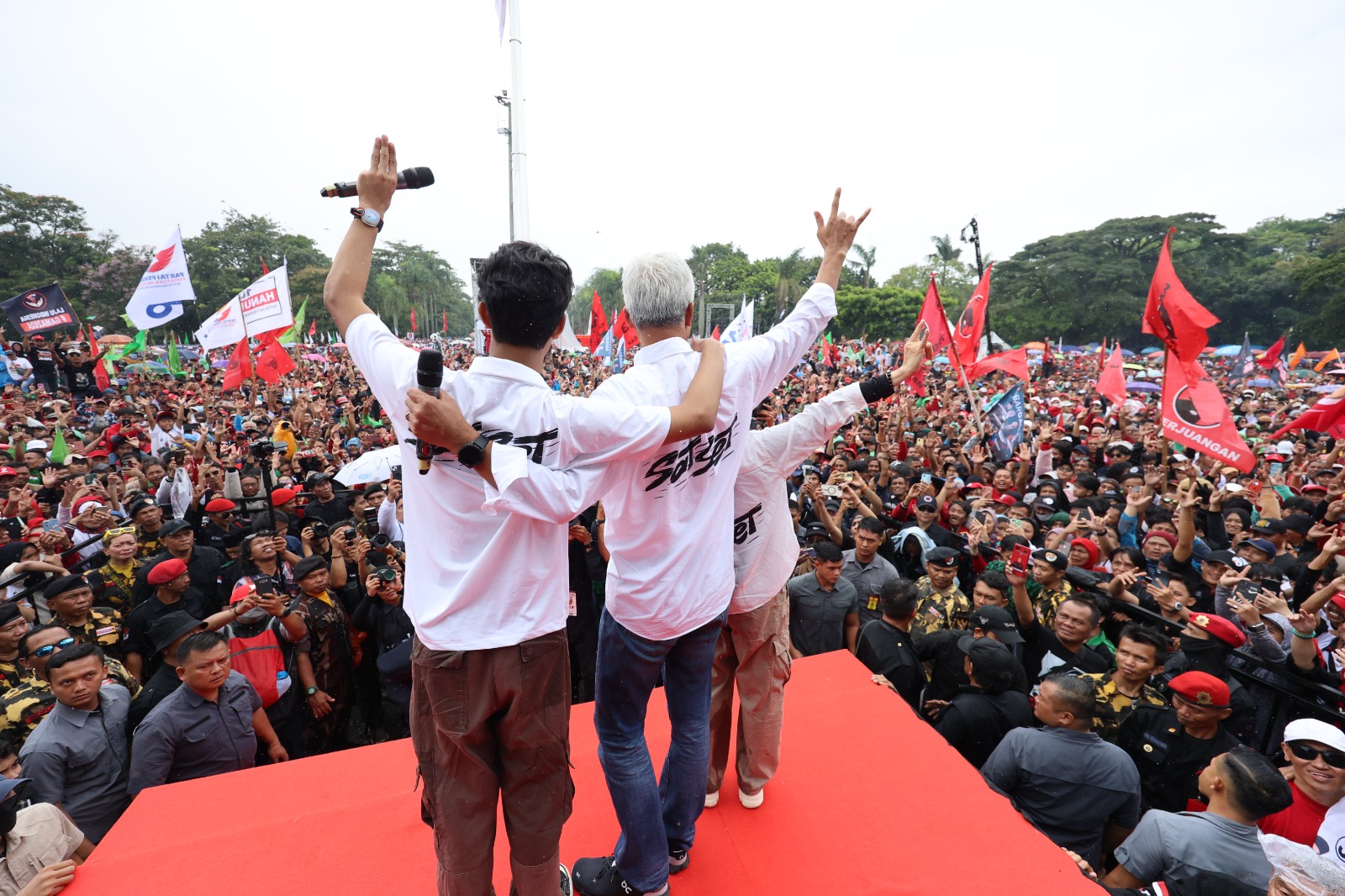 Bandung, Gesuri.id - Capres nomor urut 03 Ganjar Pranowo melakukan kampanye akbar perdana Pilpres 2024 di Kota Bandung, Jawa Barat. Ada momen menarik di mana Alam Ganjar mengajak ayahnya Ganjar Pranowo dan ibunya Siti Atikoh Supriyanti bernyanyi bersama.