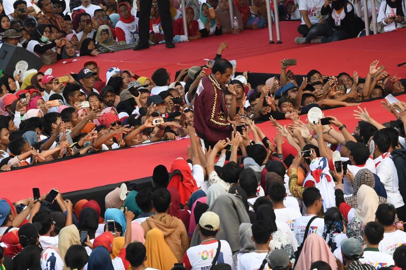 "Jangan sampai kita terkena fitnah kabar bohong alias hoaks melalui media sosial. Kita harus melawannya dengan cara berkampanye mulai 'door to door' atau pun dari rumah ke rumah dan dari desa ke desa," kata Jokowi menjelaskan, saat menghadiri deklarasi dukungan dari alumni perguruan tinggi dan SMA se-Provinsi Lampung, di Lapangan PKOR Wayhalim, Bandarlampung, Jumat (8/3).