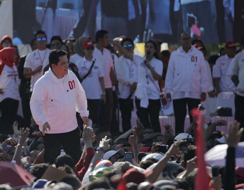 "Menuju pesta demokrasi terbesar dalam sejarah negeri ini, mari kita bersama-sama menjaga persatuan, kedamaian, dan juga kebersamaan dalam kegembiraan sehingga kita tidak mudah diombang-ambingkan berita-berita bohong. Tetap percaya kepada lembaga penyelenggaran pemilu, baik saat pencoblosan hingga perhitungan, dan hargai hasilnya, tanpa harus ada ancaman apapun. Jangan takut dan merasa terancam, karena TNI dan POlri siap mengamankan dan menjaga Pemilu agar berjalan lancar," lanjut Erick.