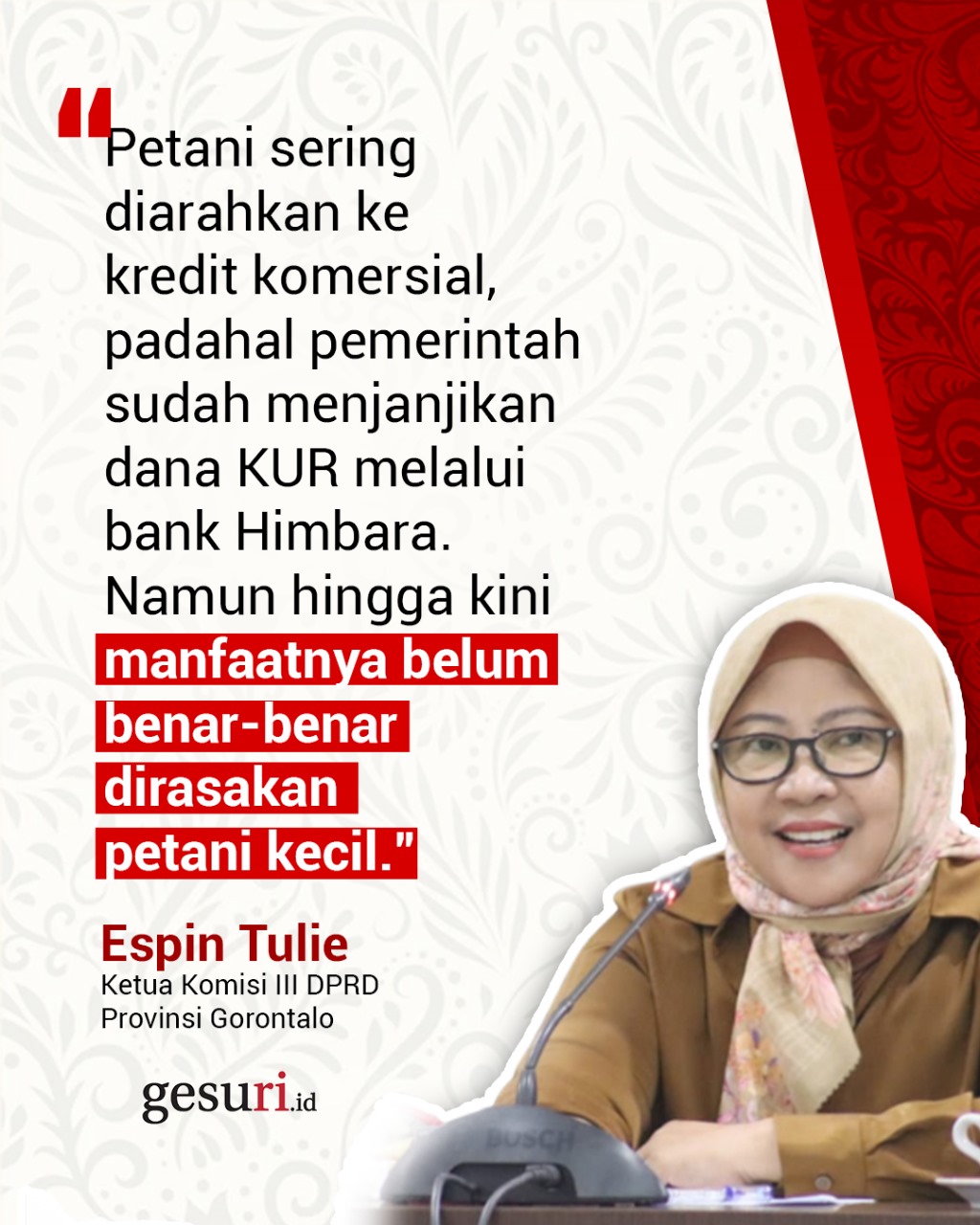 Pernyataan Espin Tulie tentang pertanian dalam Hari Tani Nasional.