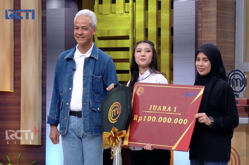 Ganjar Pranowo pun juga hadir untuk memberikan hadiah simbolis kepada dua kontestan Grand Final MasterChef Indonesia season ini.