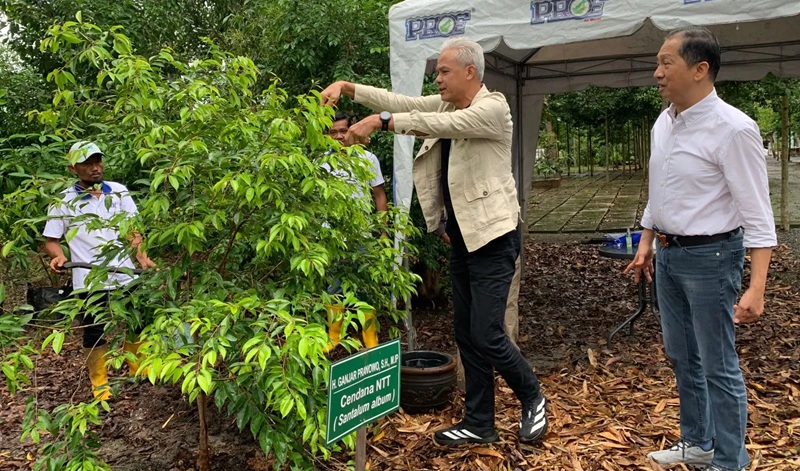 Sementara itu, Chendrawan Sugianto menyampaikan terima kasih atas kunjungan Ganjar dan partisipasinya dalam menanam pohon Cendana NTT. Ia menyebut penanaman tersebut menjadi simbol keberagaman hayati Indonesia. “Sebelumnya kami sudah menanam ulin, eboni Sulawesi, dan merbau Papua. Ke depan, kalau ada tokoh lain datang, akan kami tanam pohon berbeda dari masing-masing pulau,” ujarnya.