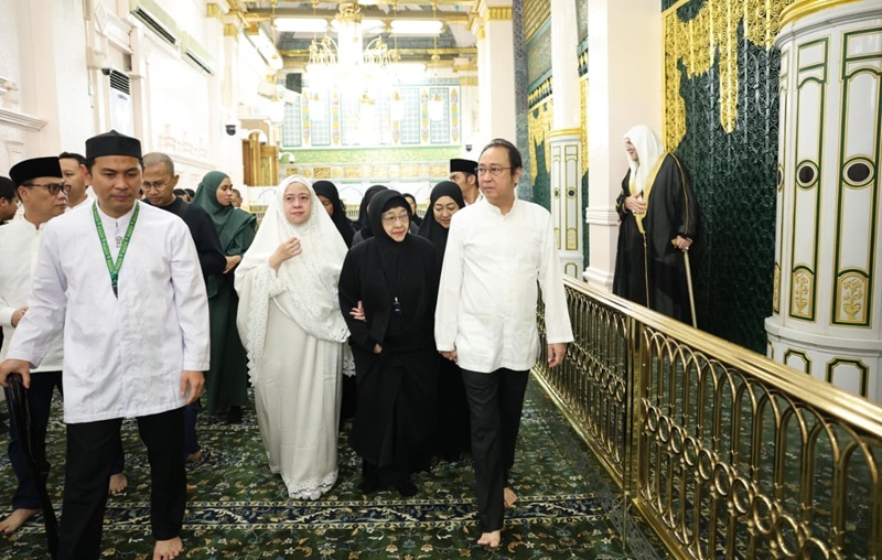 Prananda dan Puan pun menggandeng tangan Megawati menuju Raudhah.