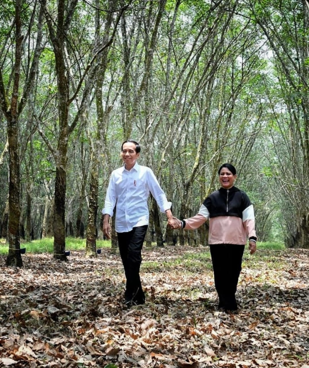 Pada unggahan 9 Maret ditengah-tengah lahan perkebunan karet Jokowi dan Iriana tampak seperti sedangan pengambilan foto pre wedding.