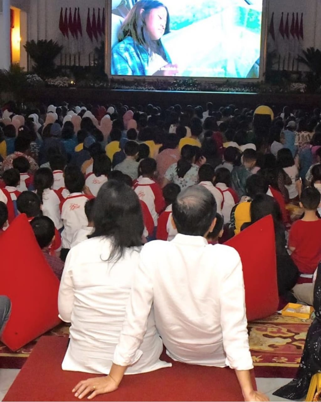 Pada unggahan 20 Juli 2018, Jokowi dan Iriana bersama anak-anak menonton film 'Kulari ke Pantai" di Istana Negara.