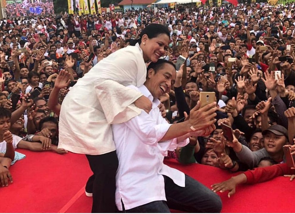 Saat menjalani kampanye Pilpres yang diunggah 26 Maret, Iriana memeluk erat Jokowi.