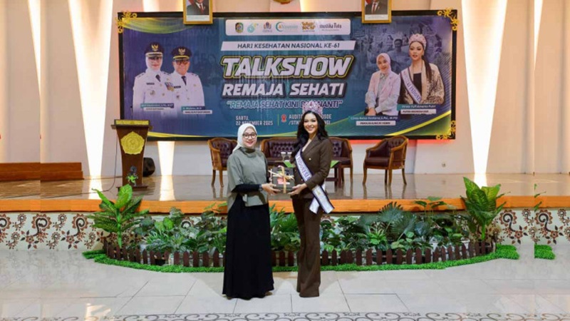 Putri Indonesia 2025, Firsta Yufi Amarta Putri, berbagi pengalaman dan mengampanyekan kesehatan mental remaja pada acara talkshow bertajuk “Remaja Sehati” (Remaja Sehat Kini dan Nanti) di Banyuwangi.